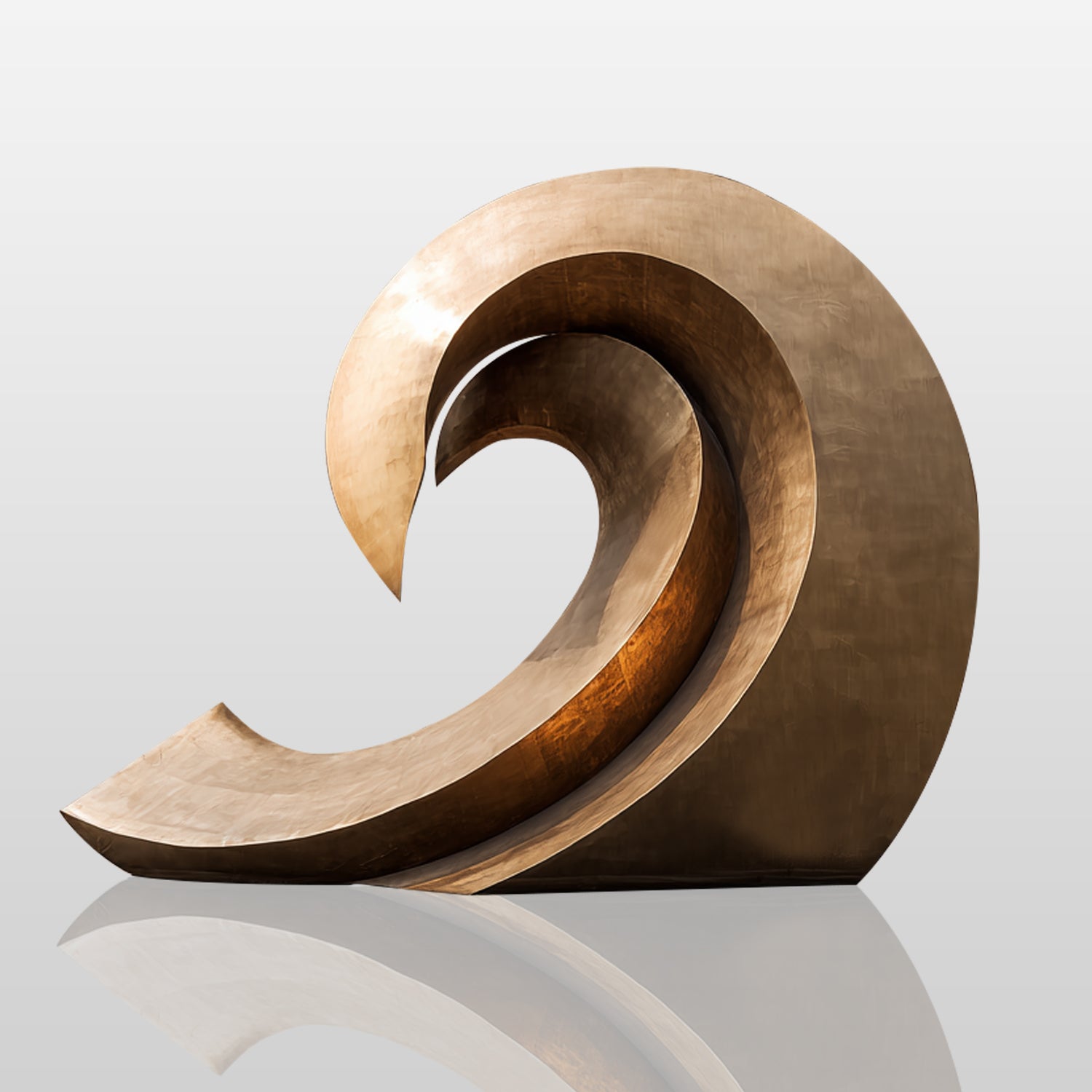 This brass wave sculpture embodies the power and elegance of the ocean, with fluid curves that capture the motion of water frozen in time. Crafted from golden brass, the polished surface reflects natural light, creating a stunning focal point for any outdoor or architectural space.