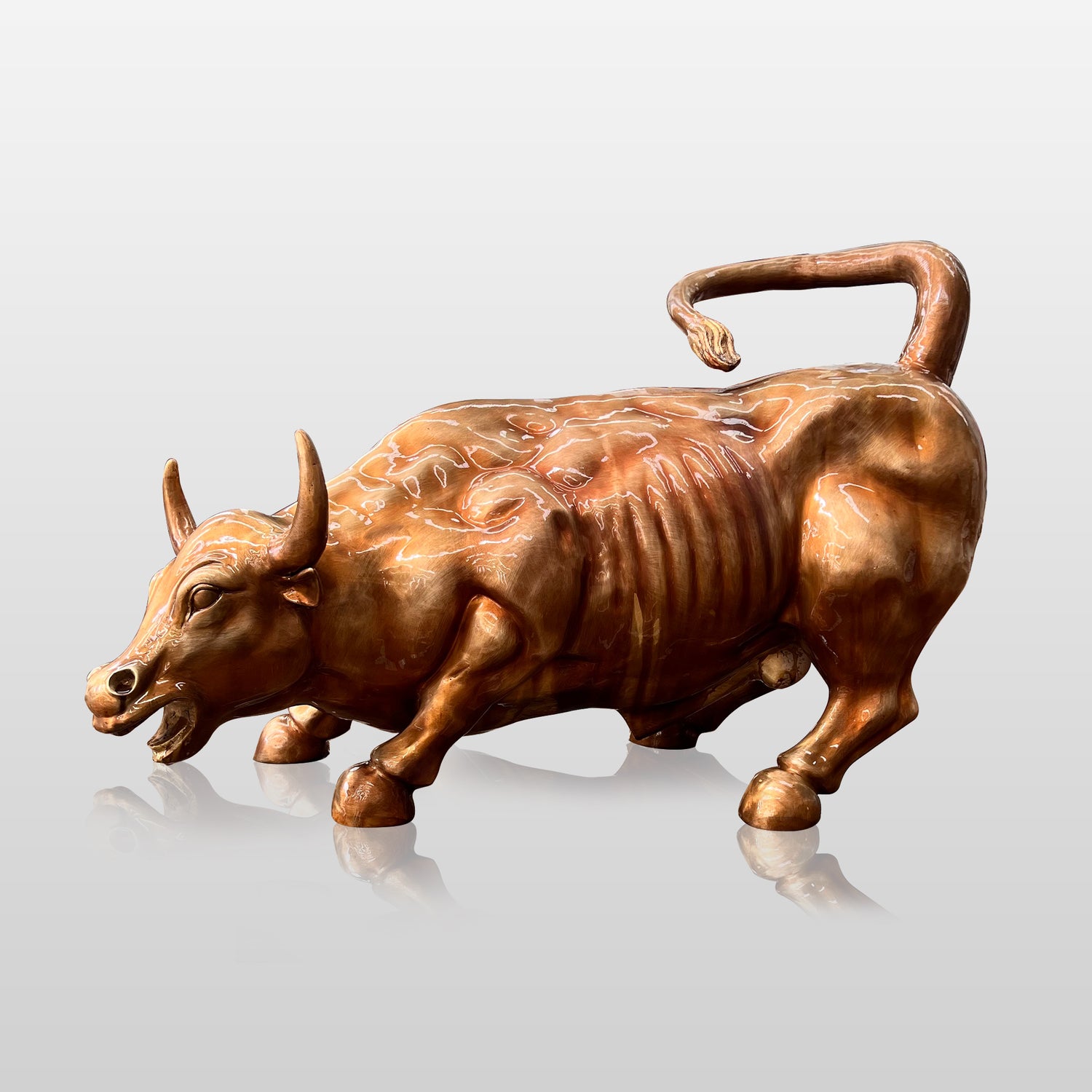 Command attention and inspire strength with this bronze charging bull statue. The bull is a powerful symbol of momentum, vitality, and financial prosperity. Crafted with dynamic realism and muscular tension, this outdoor animal statue captures the bull mid-charge—tail curled, horns forward, and hooves rooted in determination.