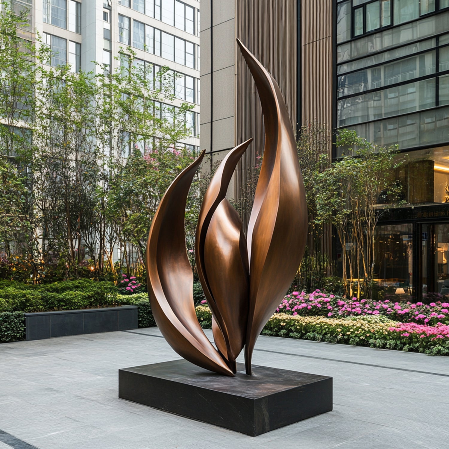 The embodiment of modern elegance and sophistication, this stunning bronze flame sculpture will transform your outdoor space. Crafted with precision, the modern outdoor sculpture features a captivating flame-like design, symbolizing energy, renewal, and timeless beauty. Its durable bronze finish ensures longevity and resilience, making it a perfect centerpiece for gardens, courtyards, and urban landscapes.