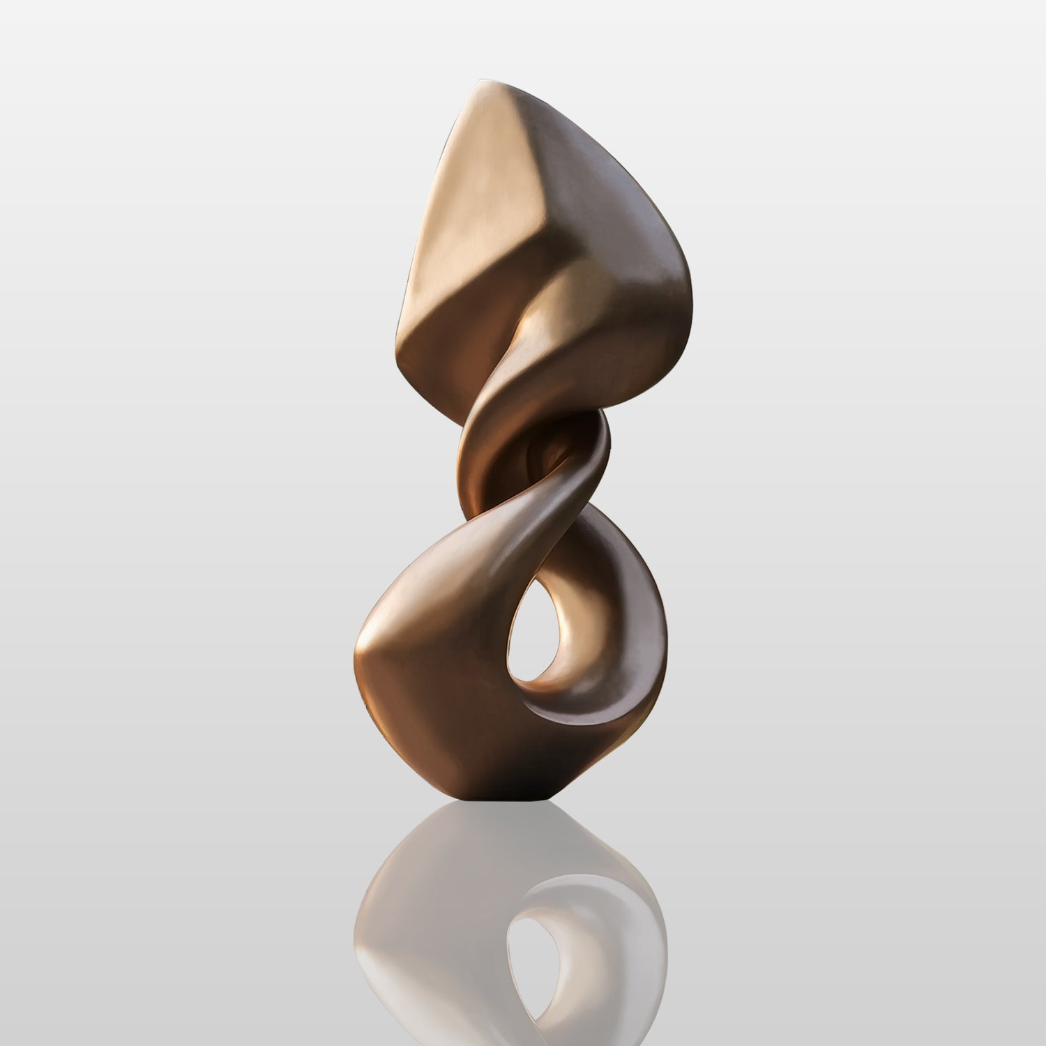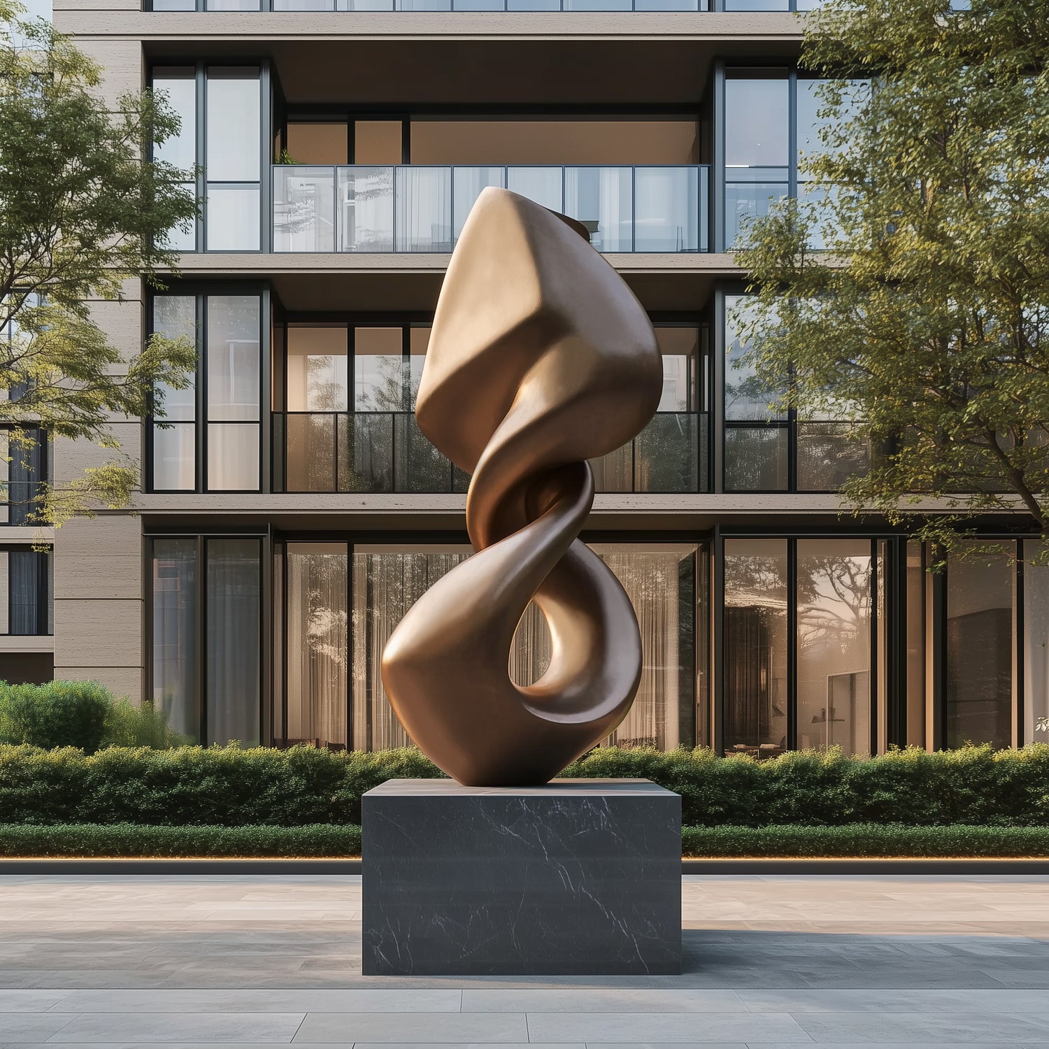 This modern abstract sculpture fuses organic fluidity with architectural precision, making it the perfect statement piece for luxury developments, high-end residences, or public plazas. The twisted bronze form flows seamlessly upward, inviting movement and curiosity from every angle.