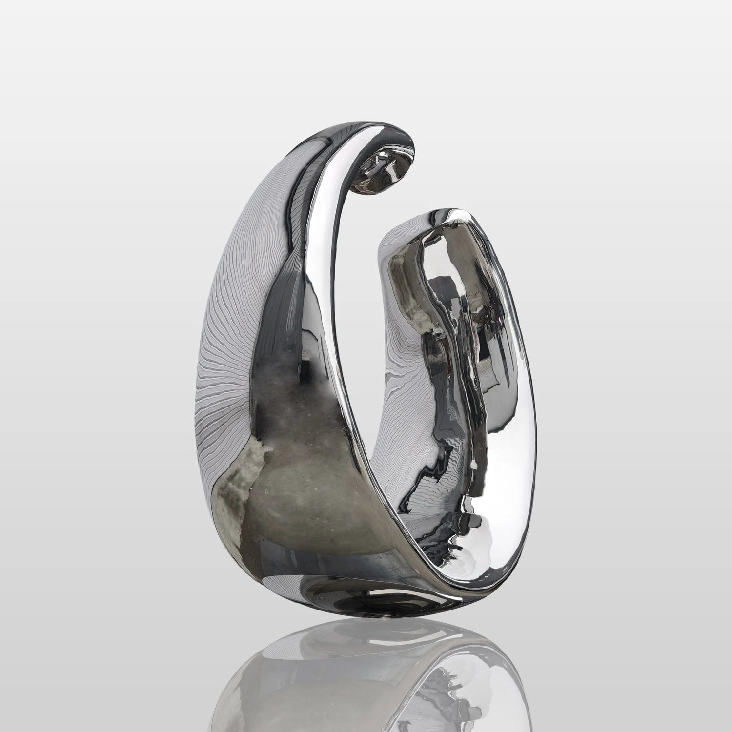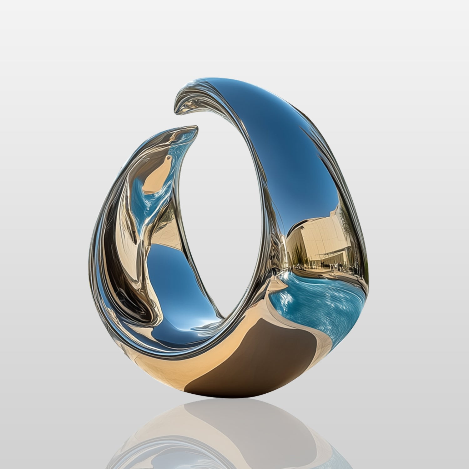 Its shape evokes the energy of a cresting wave or the grace of a marine current—perfectly at home in luxury beach resorts, seafront residences, or coastal hospitality landscapes. This mirror-finish stainless steel sculpture floats visually while grounded architecturally, inviting serenity and contemplation from every angle.