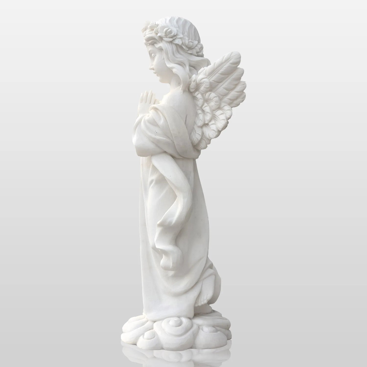 PREMIER Praying Angel Marble Sculpture for Villas Courtyards and Memorial Outdoor Spaces PSM-090