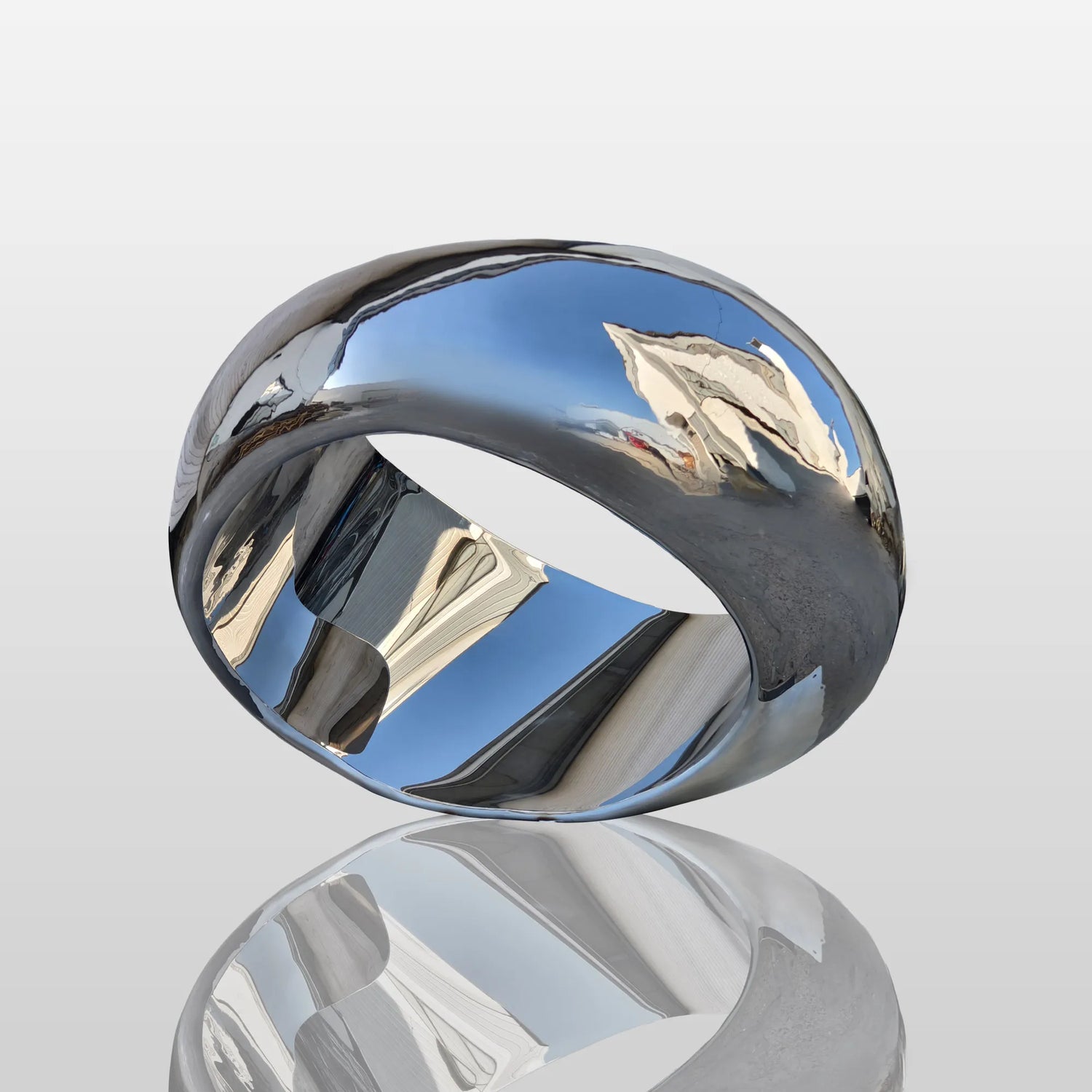 Add an artistic touch to your outdoor or indoor space with this beautiful modern abstract sculpture. This stainless steel sculpture features a unique design with flowing curves that will attract attention from every angle. The highly reflective mirror-polished surface interacts perfectly with natural light to create dazzling reflections.