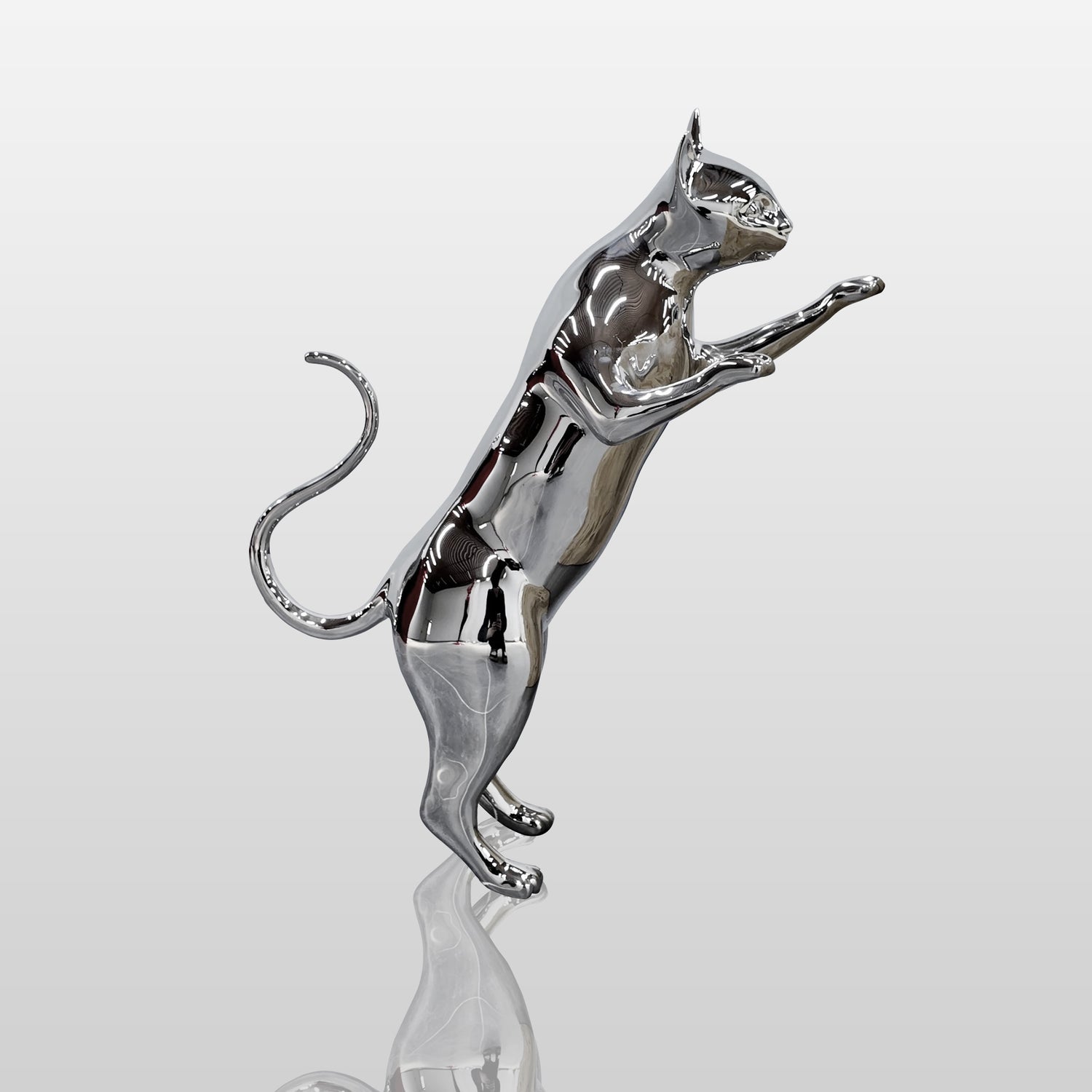 PREMIER Modern Animal Sculpture Contemporary Stainless Steel Cat Art Statue PSSS-088