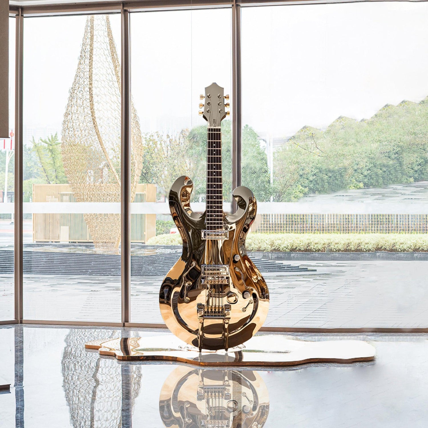 Unveil the ultimate symbol of musical passion with this electric guitar modern art sculpture. Meticulously crafted, this stainless steel sculpture seamlessly blends the allure of contemporary design with the timeless appeal of a classic electric guitar shape. The sculpture's highly polished surface casts captivating reflections, ensuring it stands out as a focal point in any setting. This piece is ideal for upscale living rooms, chic office spaces, high-end hotels, or exclusive music-themed venues.