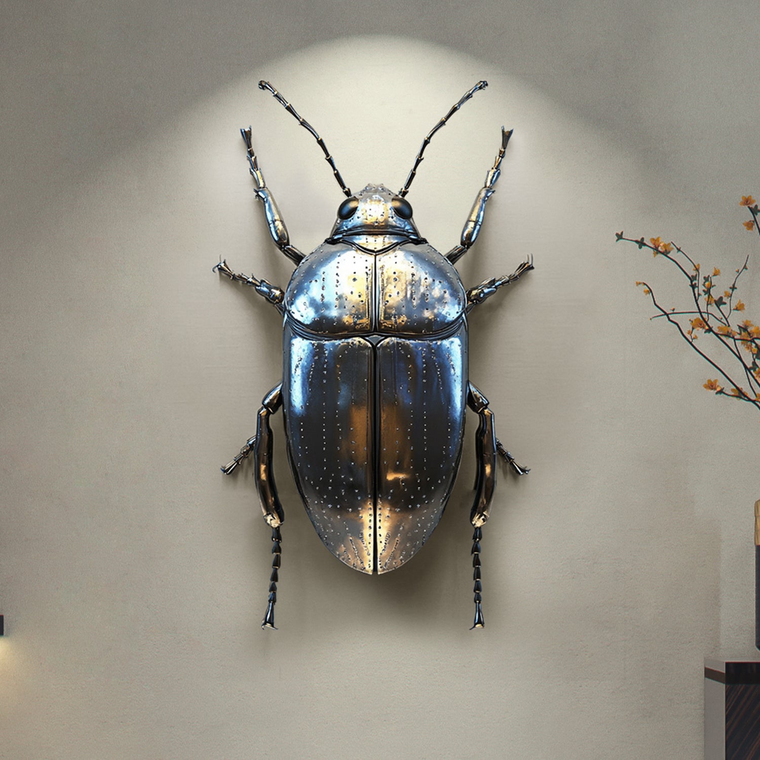 Enhance the interiors with this beetle wall sculpture that blends art and nature. Crafted from stainless steel with attention to detail, this beetle sculpture's reflective surface enhances its intricate design. From the beetle's delicate antennae to the texture of its legs, each element has been carefully designed to capture the essence of this fascinating insect sculpture.