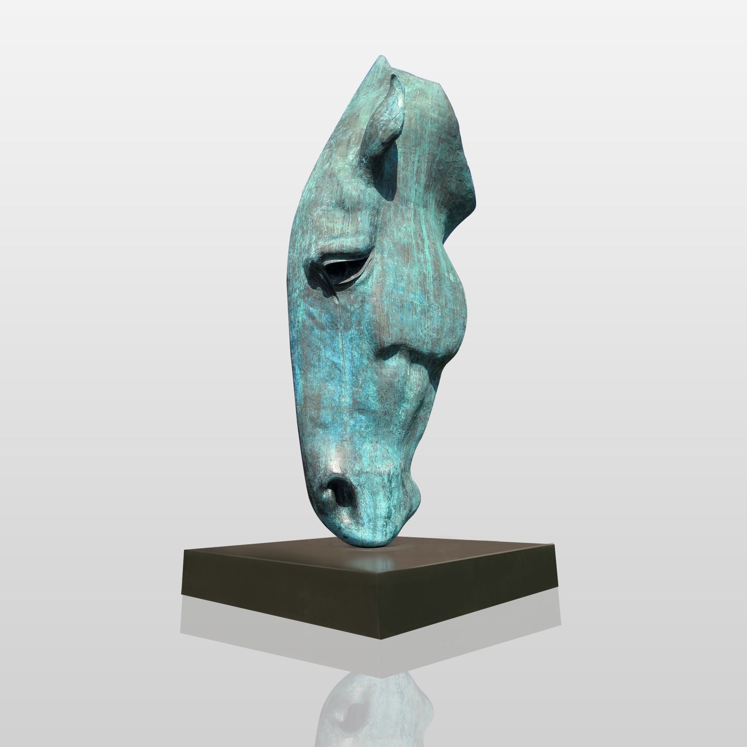 The horse head sculpture is made of durable bronze using traditional casting techniques. This large sculpture is a focal point in any outdoor garden or park. The vividness of the horse's head gives a sense of strength and majesty. The bronze not only ensures the durability of the sculpture, but also imparts a lustrous patina. Over time, the patina deepens, increasing its charm and personality.