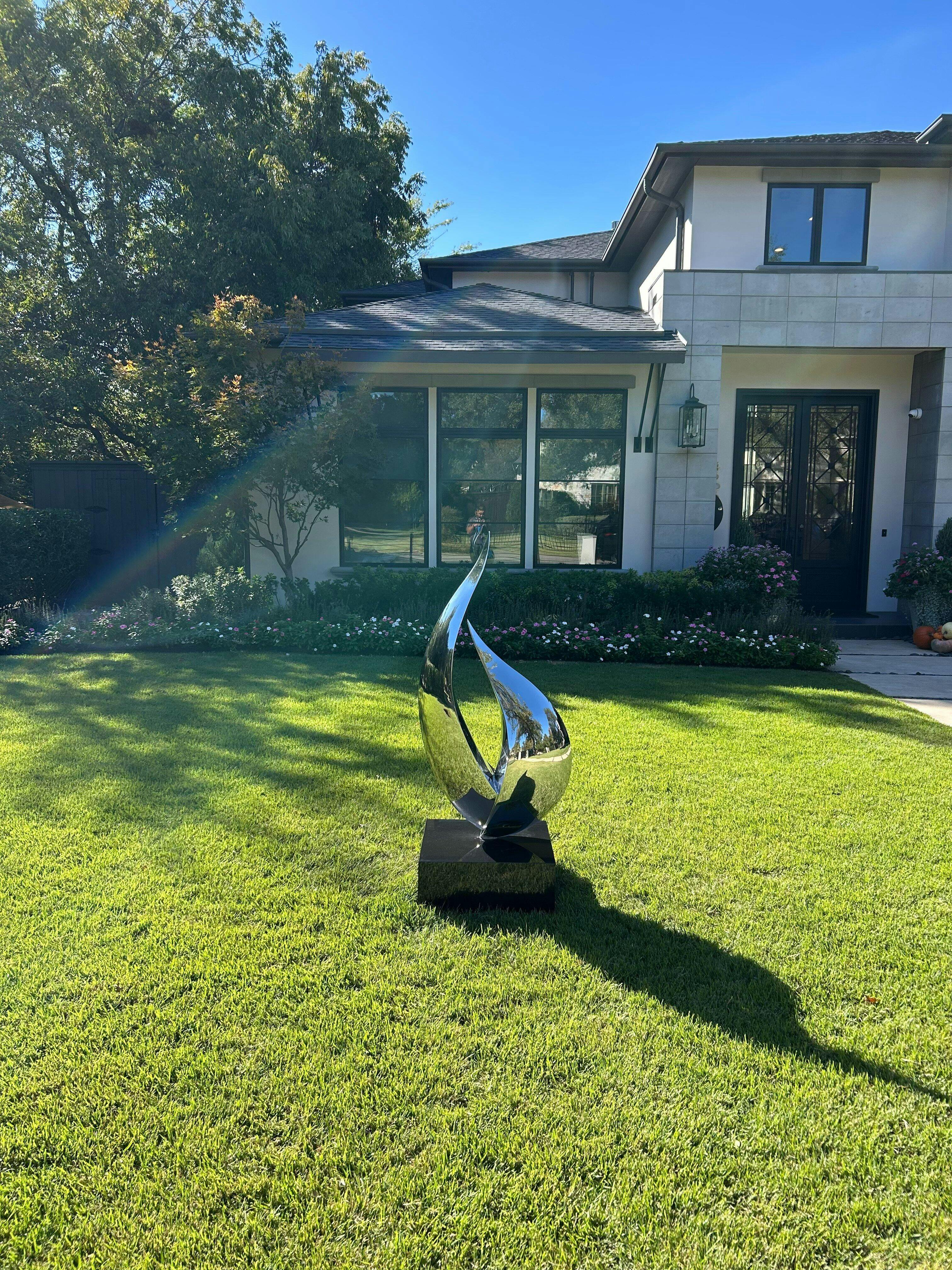 Crafted from weather-resistant outdoor art materials, this sculpture is built to withstand the elements while maintaining its sleek aesthetic. Its minimalist modern design allows it to harmonize with contemporary architecture, creating a gallery-worthy centerpiece. Ideal as a statement piece for hotels or a refined addition to elegant office sculpture collections, this artwork elevates any environment with its dynamic yet timeless appeal.