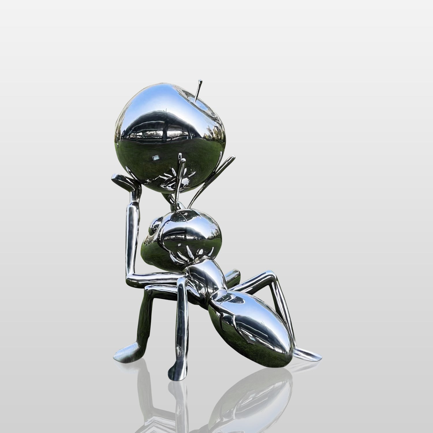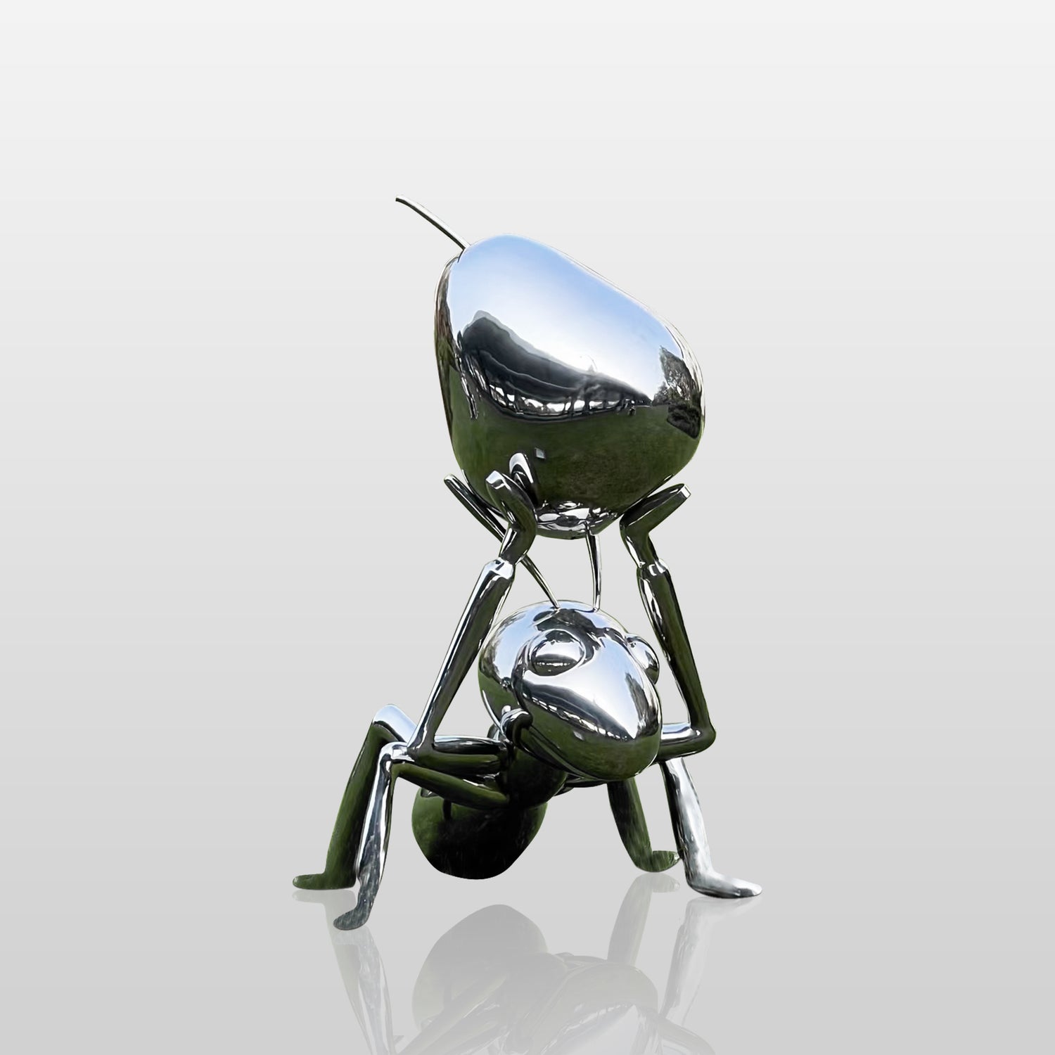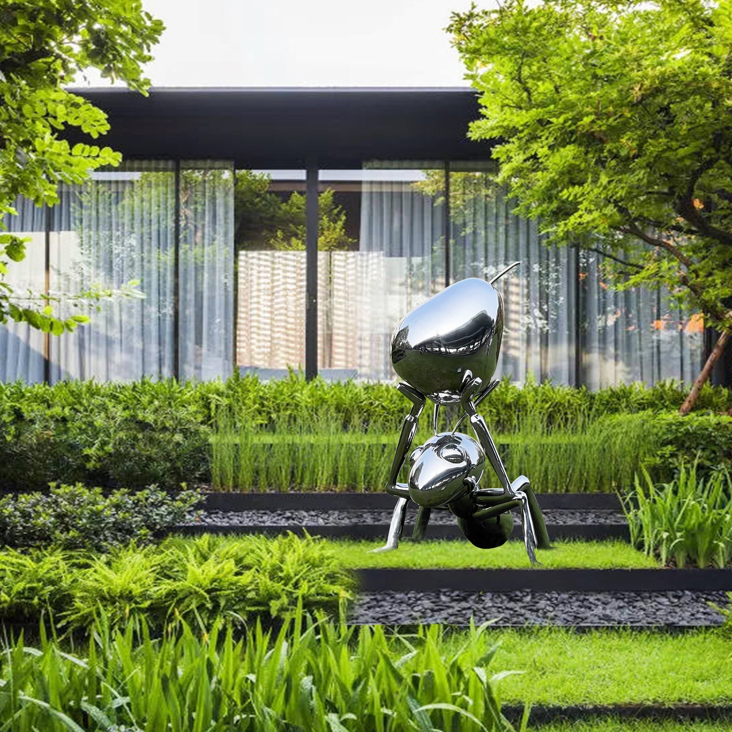 Présentation de la sculpture de jardin « Industrious Ant », une superbe œuvre d'art contemporain qui allie la nature et le design moderne. Fabriquée en acier inoxydable poli, cette sculpture de jardin artistique représente une fourmi travailleuse portant une charge importante sur son dos, symbolisant la diligence.