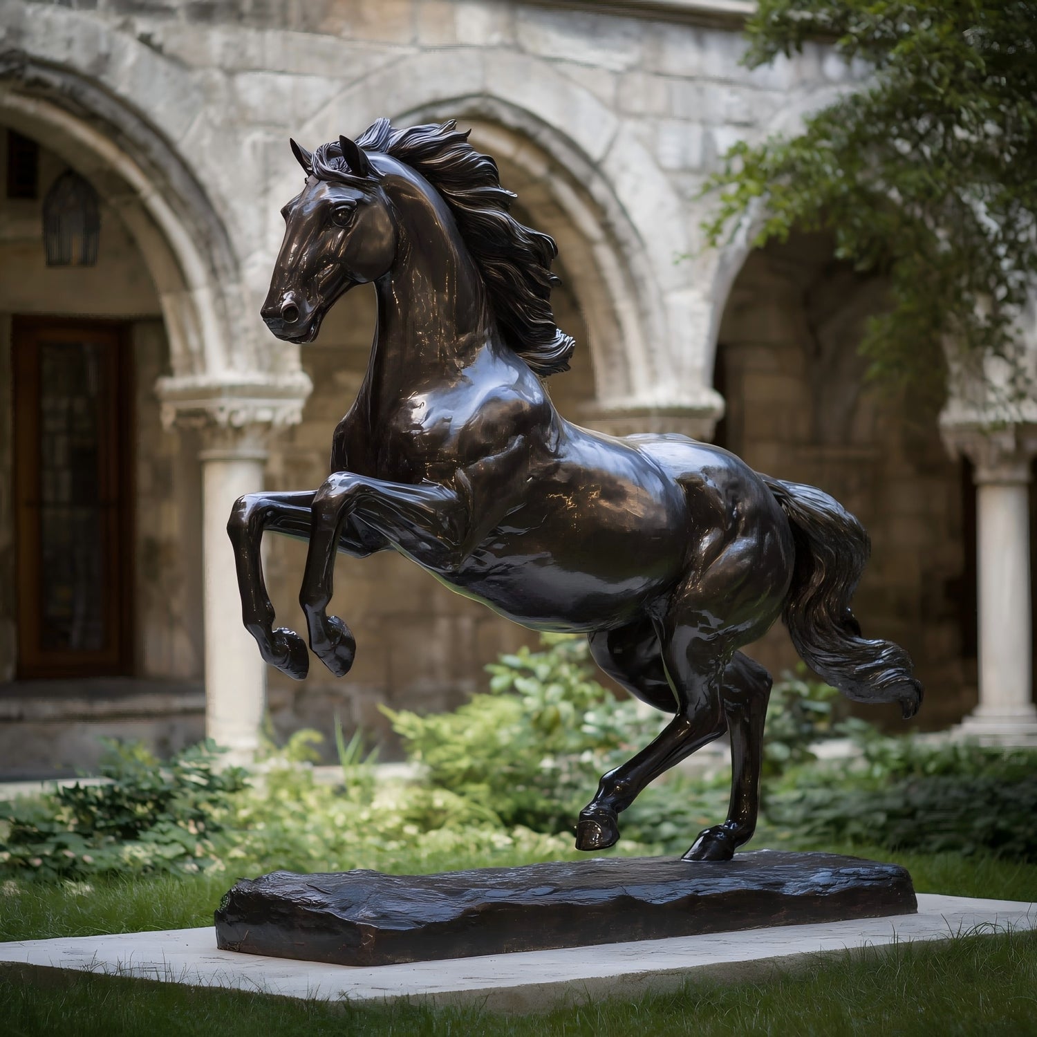 Per favore, goditi la scultura in bronzo del cavallo impennato ! Il cavallo selvaggio congelato nel momento della corsa! Realizzata in bronzo, la splendida scultura è un'espressione di potere infinito e buon umore. La potenza sfrenata di questo mustang selvaggio, gli zoccoli che fendono l'aria. I suoi muscoli si increspavano con la lucentezza del bronzo, trasmettendo vigore e vitalità infiniti.